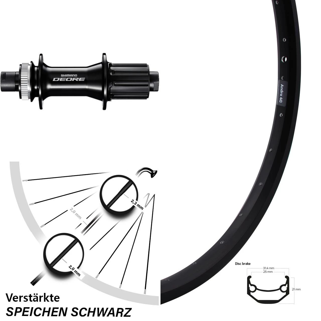 Technische Daten Hinterrad Ryde Andra 40 Disc schwarz und Nabe Shimano FH-M6010