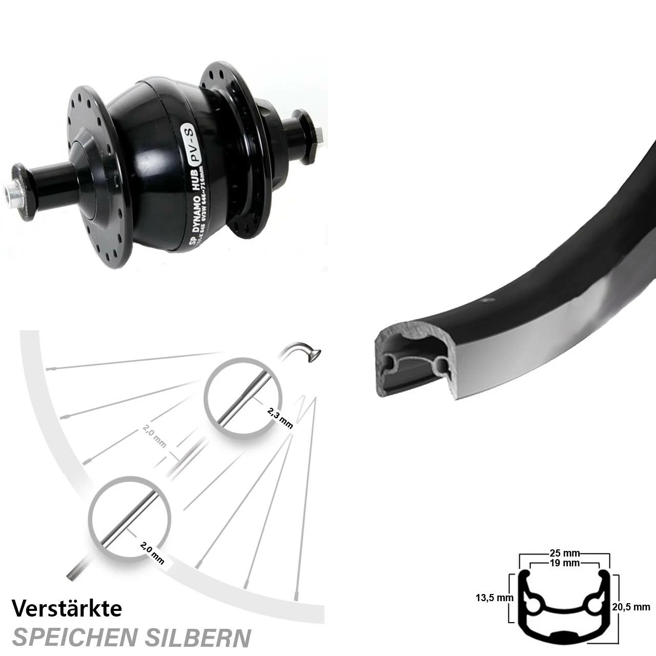 Technische Daten vorderes Laufrad Ryde Andra 30 Felgenbremse schwarz & Nabendynamo Shutter Precision PV-8 Felgenbremse schwarz
