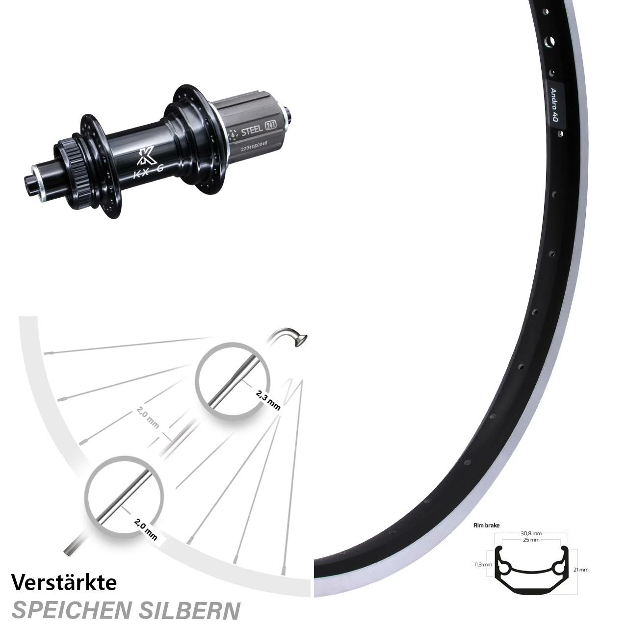 Technische Daten Hinterrad Ryde Andra 40 Felgenbremse schwarz und Nabe KX-G/S Hinterradnabe Centerlock 5/135 schwarz