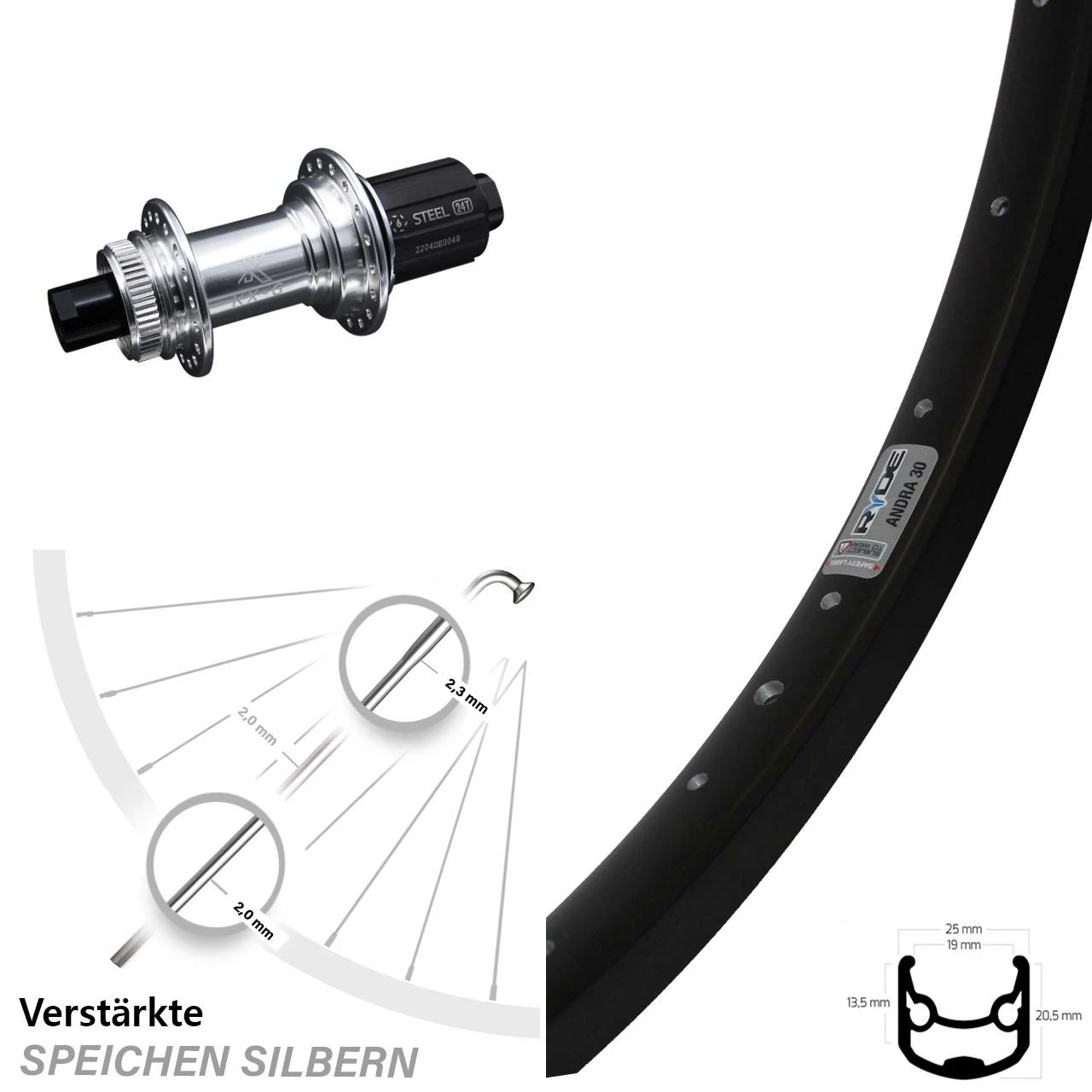 Technische Daten Hinterrad Ryde Andra 30 Disc schwarz und Nabe KX-G/S Hinterradnabe Centerlock 12/142 silbern
