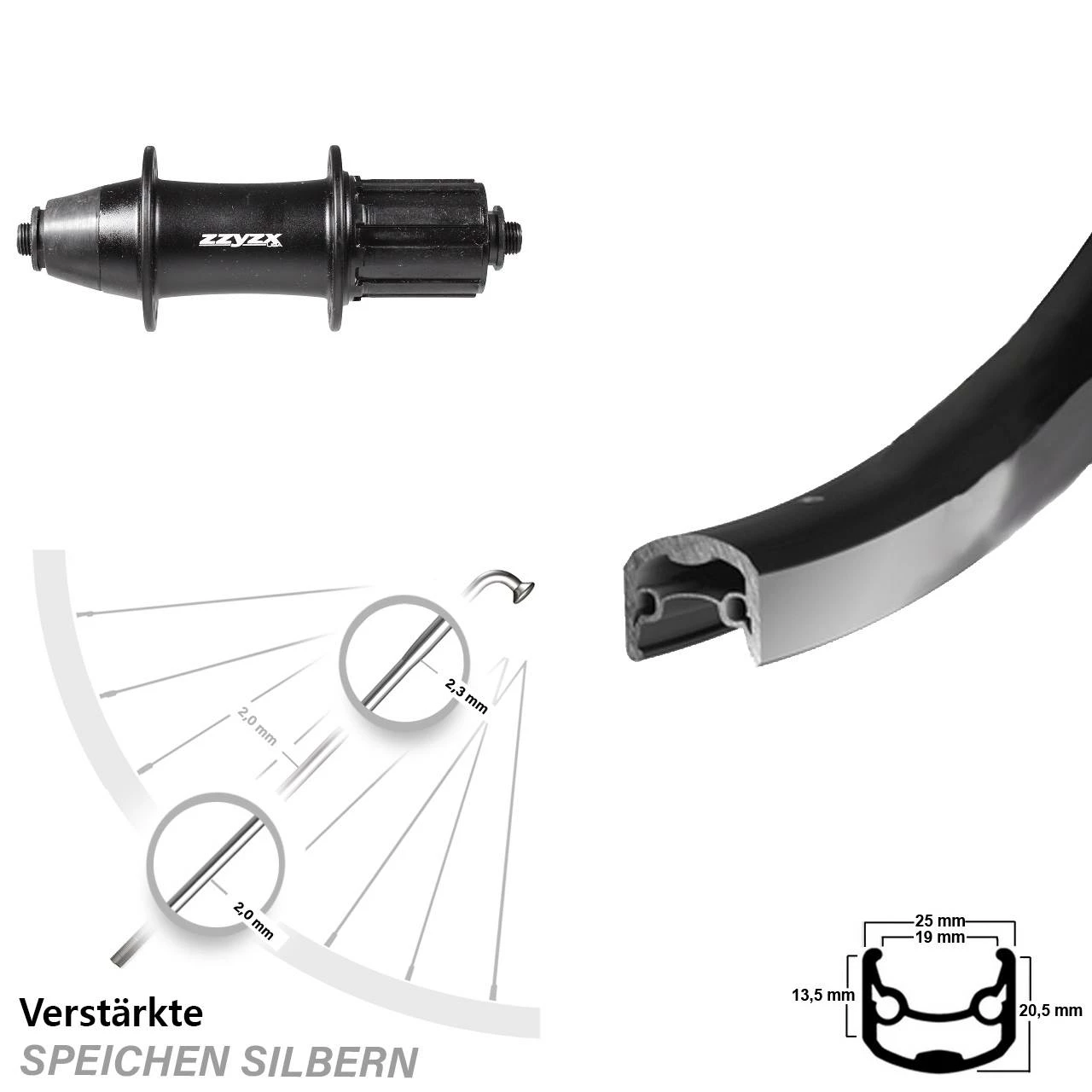 Technische Daten Hinterrad Ryde Andra 30 Felgenbremse schwarz und Nabe Formula ZZYZX OV-32 schwarz