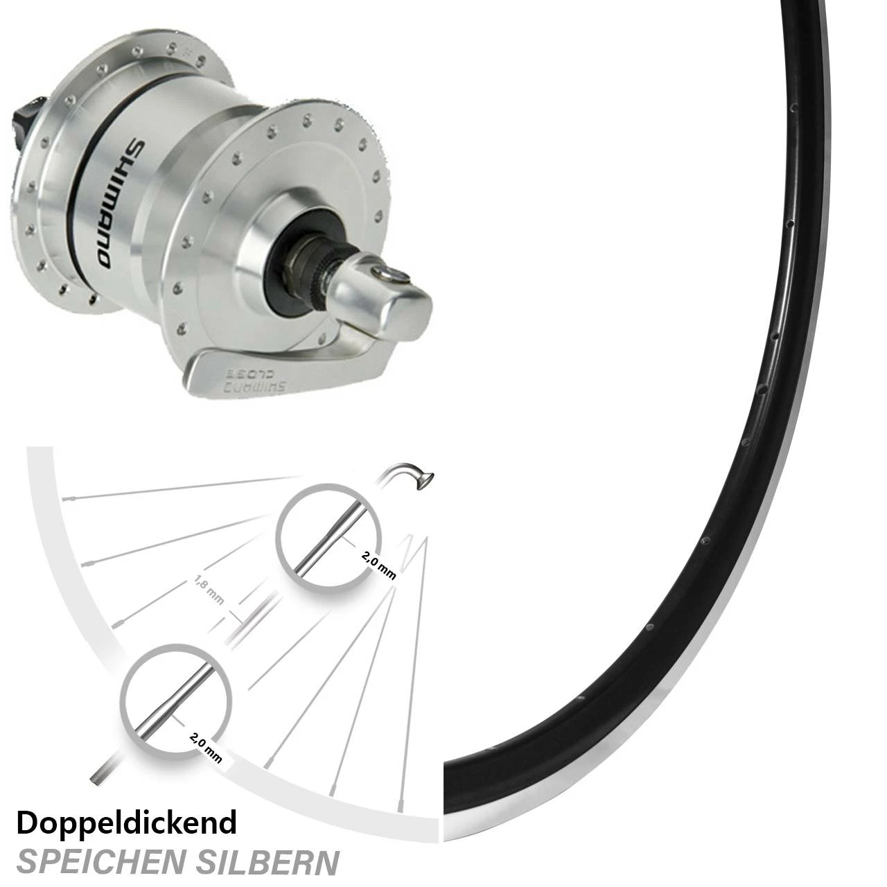 - Nabendynamo: Shimano DH-3N72 silbern – besonders leichtläufig