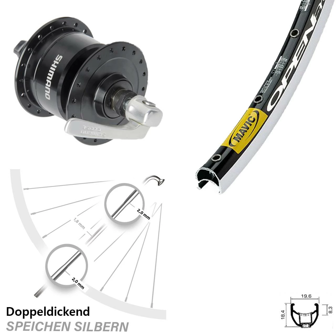 Produktbeschreibung 28 Zoll Vorderrad Rennrad Mavic Open Pro schwarz Shimano DH-3N72 Nabendynamo
