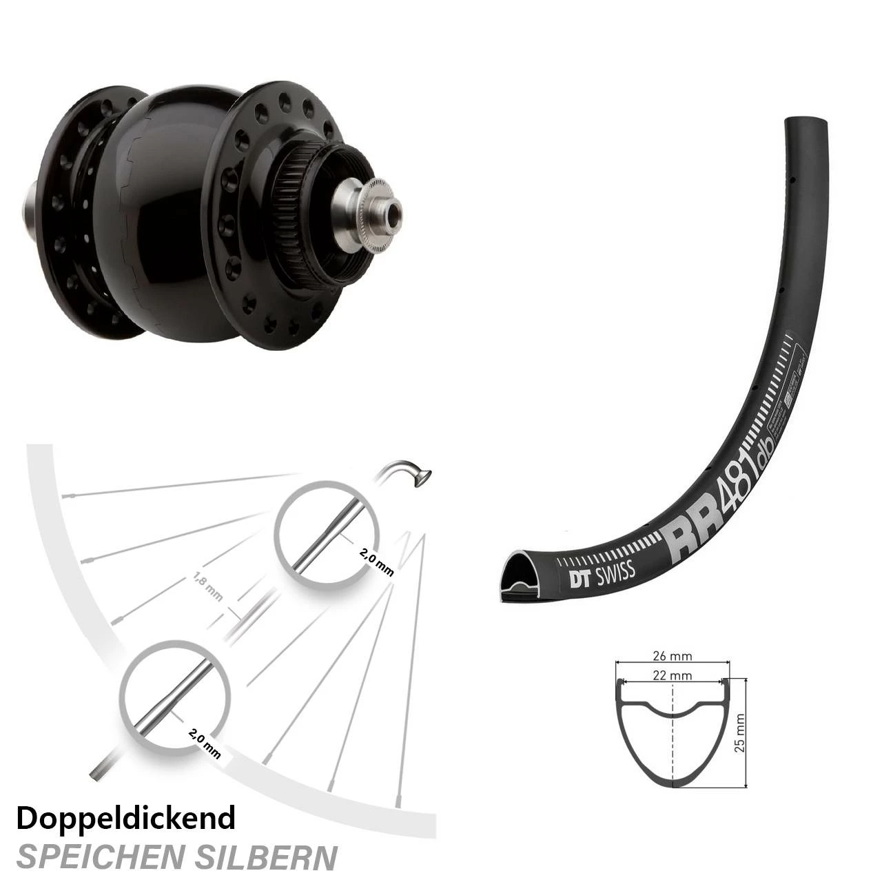 - Vorderrad 28 Zoll DT Swiss RR 481 DB schwarz mit Nabendynamo SON 28 schwarz