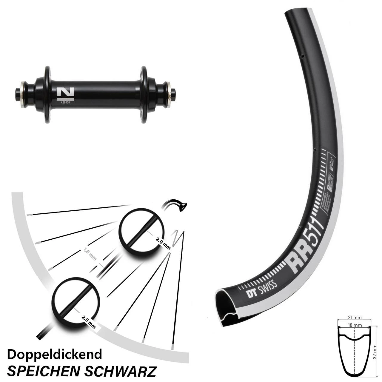 Technische Daten Vorderrad DT Swiss RR 511 RB Felgenbremse schwarz mit Nabe Novatec A291SB Superlight schwarz
