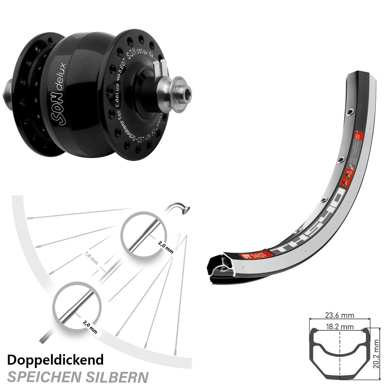 28 Zoll Vorderrad Son Delux Nabendynamo DT Swiss TK 540 mit Doppeldickendspeichen