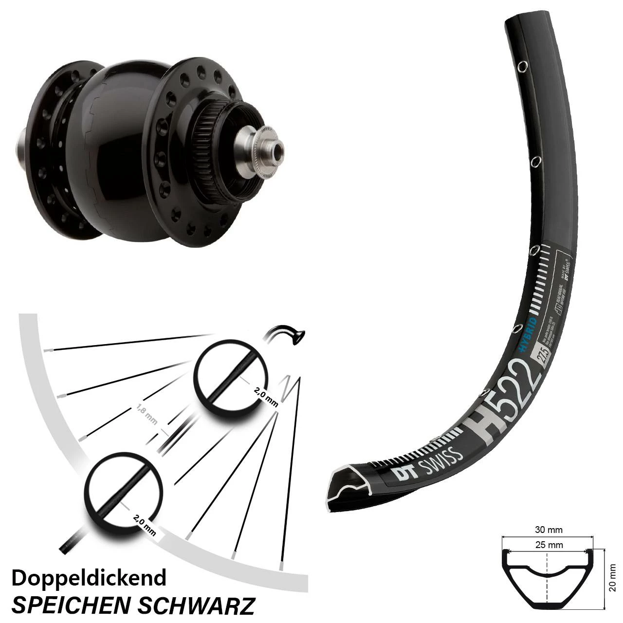- Vorderrad 29 Zoll DT Swiss H 522 schwarz mit Nabendynamo SON 28 schwarz