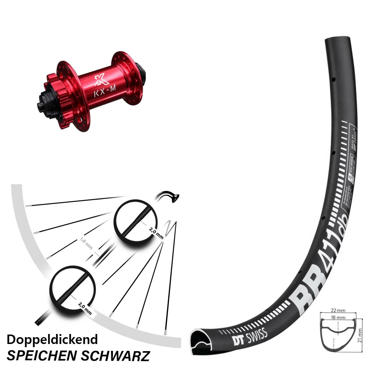 - Laufrad 28 Zoll DT Swiss RR 411 Disc KX-M Vorderradnabe 5/100 6-Loch rot