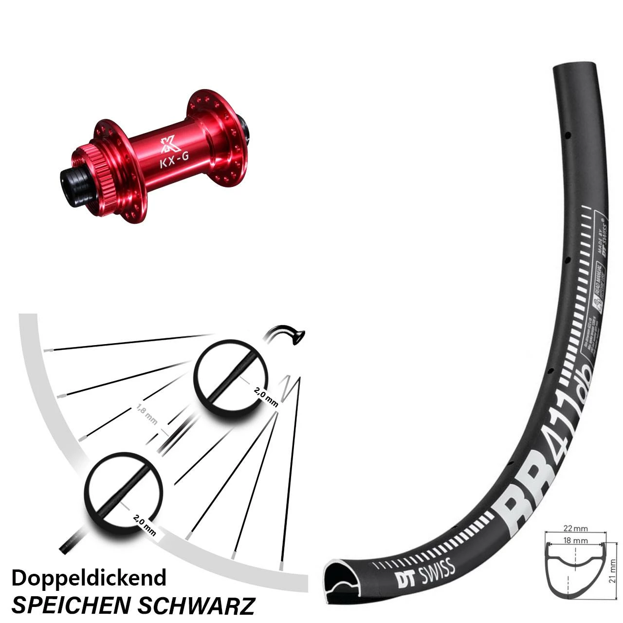- DT Swiss RR 411 Vorderrad 28 Zoll mit KX-G Nabe rot-eloxiert Steckachse