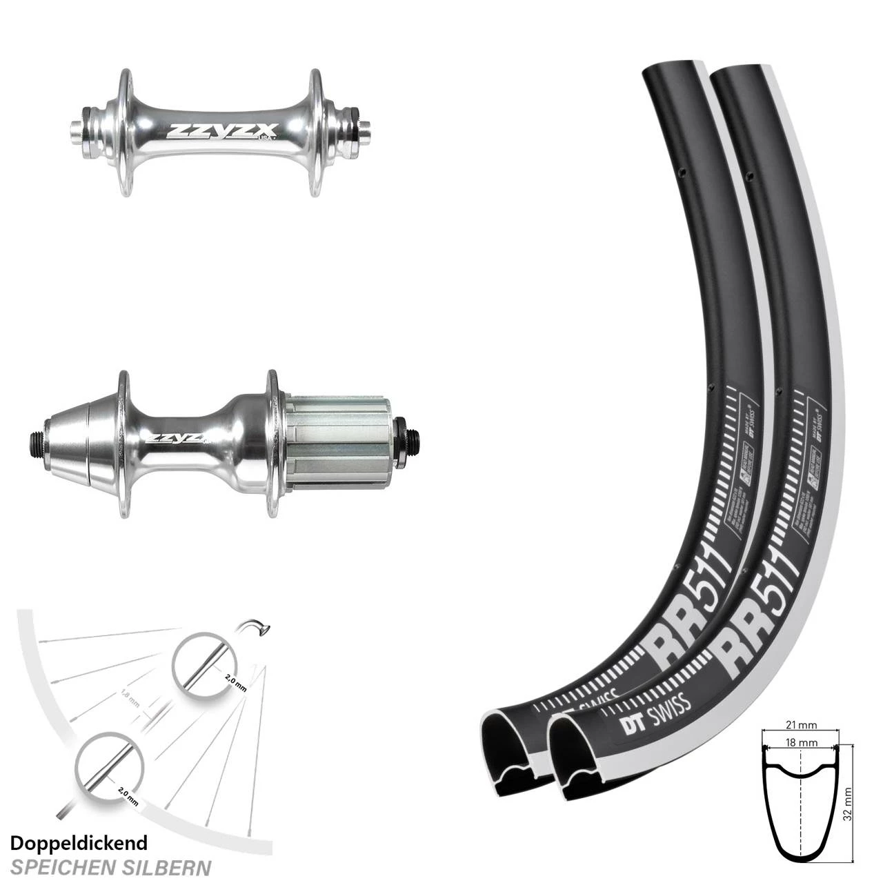 mit Reifenbreite 23-45 mm - Vorderrad-Nabe / Hinterrad-Nabe: Formula ZZYZX RB-35,Formula ZZYZX VR RB-91S silbern