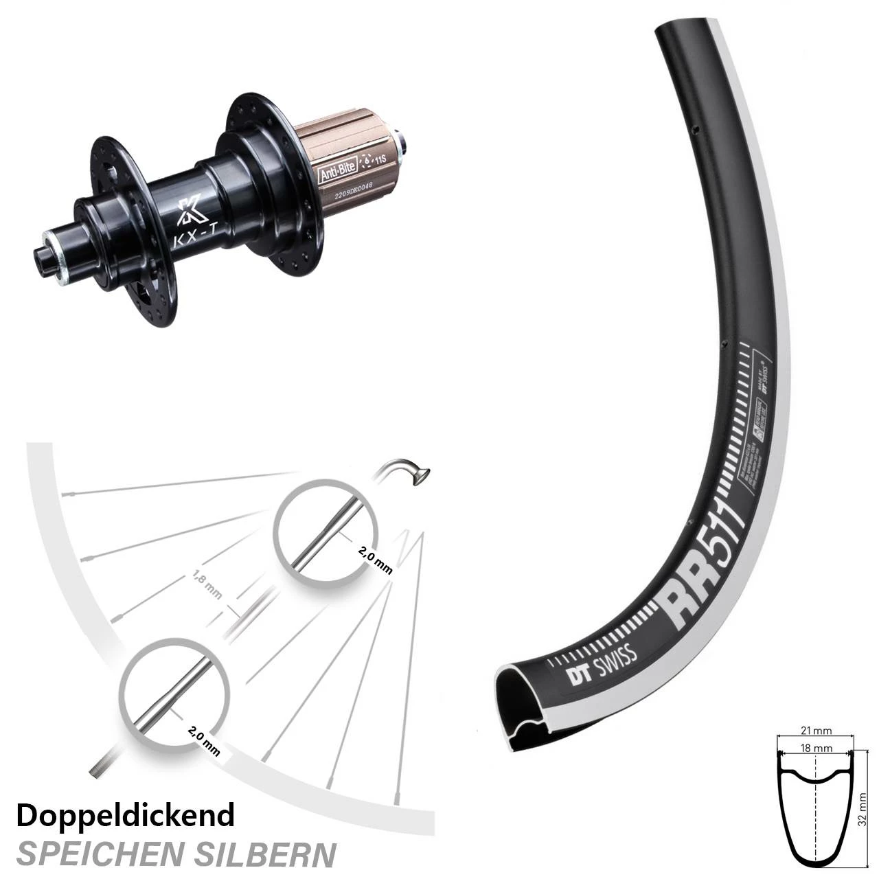 KX-T 130 mm schwarz DT Swiss RR 511 Hinterrad 28 Zoll Rennrad hohe Felge mit Doppeldickendspeichen