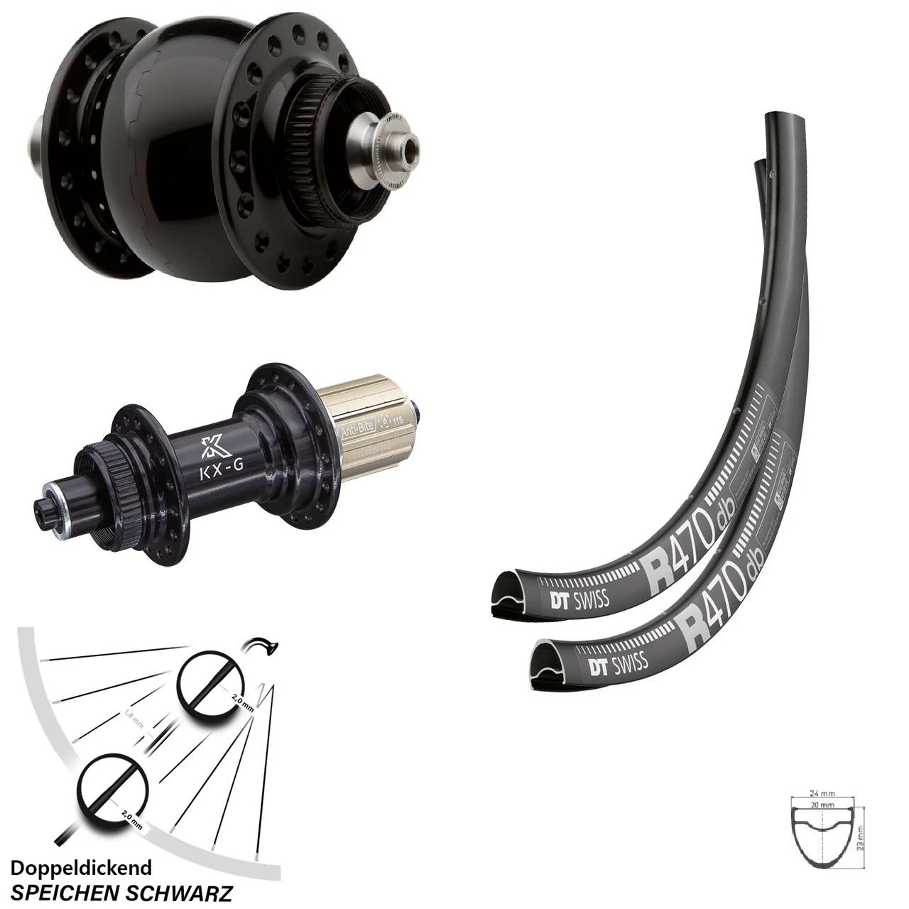 Laufradsatz Road Disc DT Swiss R 470 mit Nabe KX-G Shimano Dynamo Son 28 mit Doppeldickendspeichen