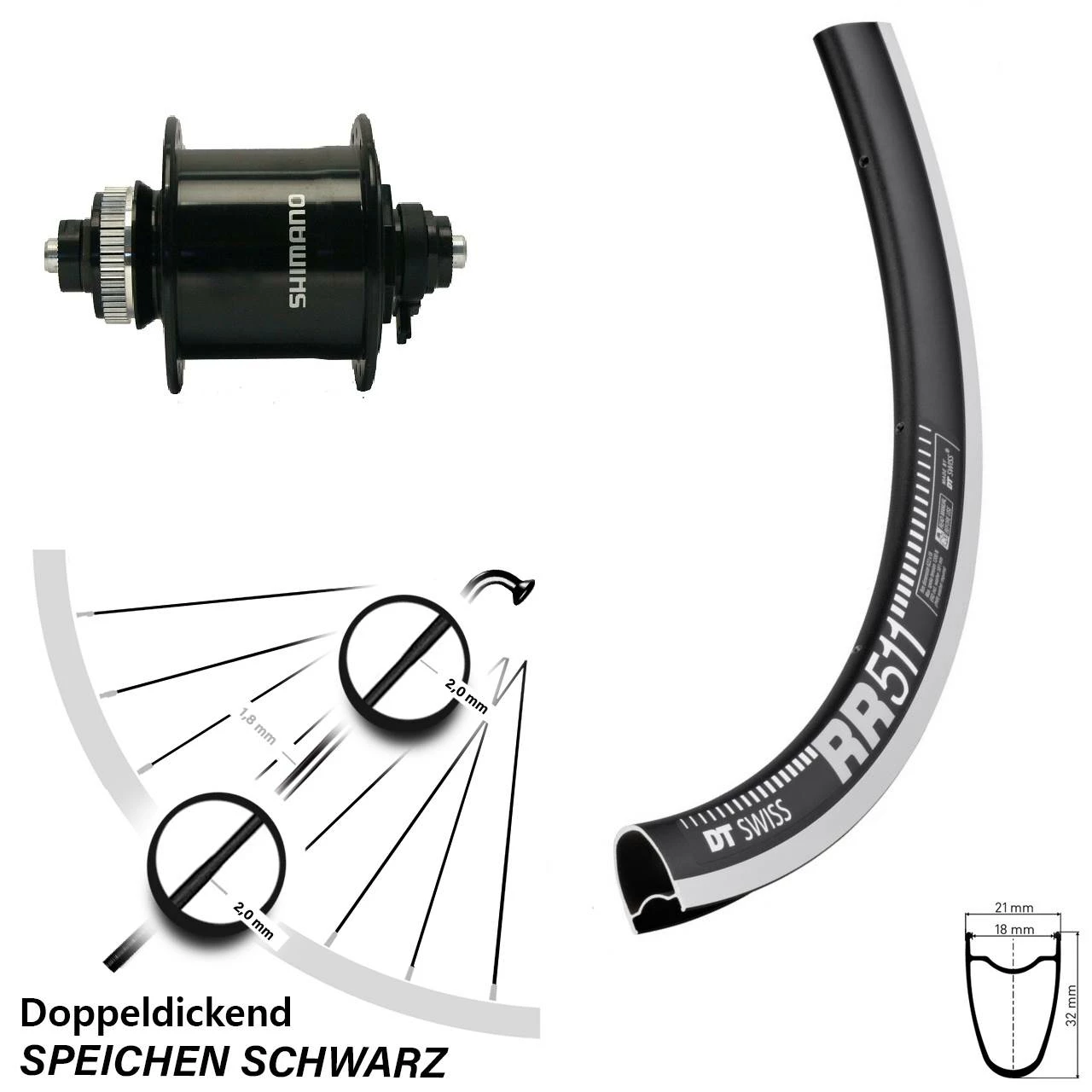 - Vorderrad 28 Zoll DT Swiss RR 511 schwarz mit Nabendynamo Shimano DH-UR700 schwarz