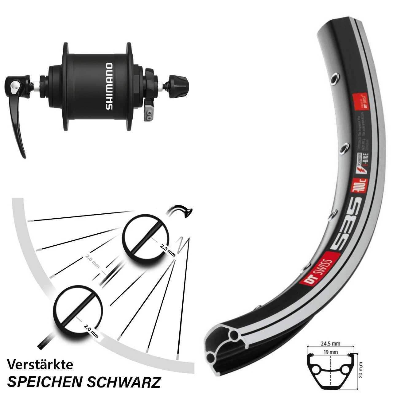 - Vorderrad 28 Zoll DT Swiss 535 schwarz mit Nabendynamo Shimano DH-T4000 schwarz