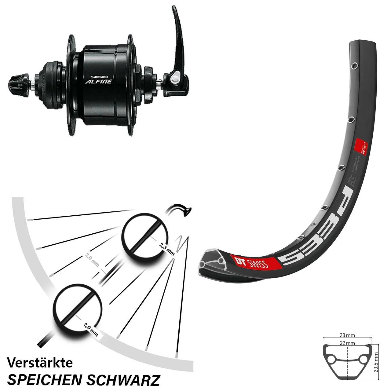 - Vorderrad 27,5 Zoll DT Swiss 533 D schwarz mit Nabendynamo Shimano Alfine DH-S501 schwarz