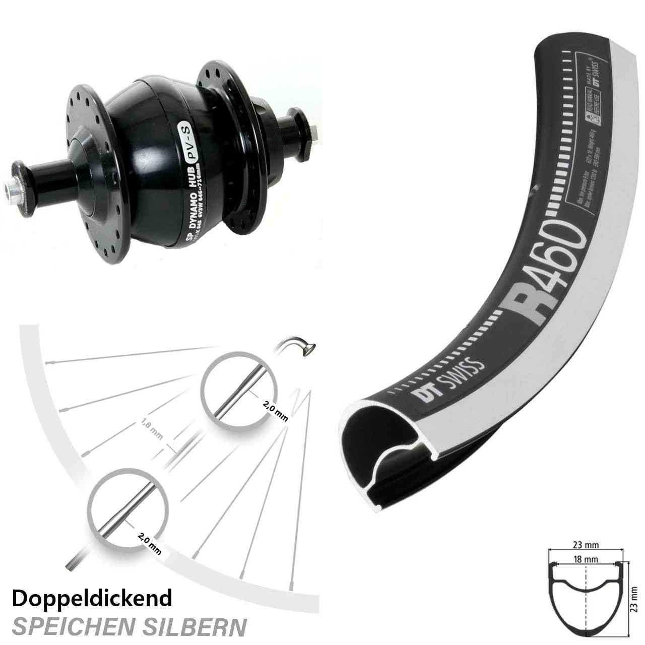 - Vorderrad 28 Zoll DT Swiss R 460 schwarz mit Nabendynamo Shutter Precision PV-8 schwarz