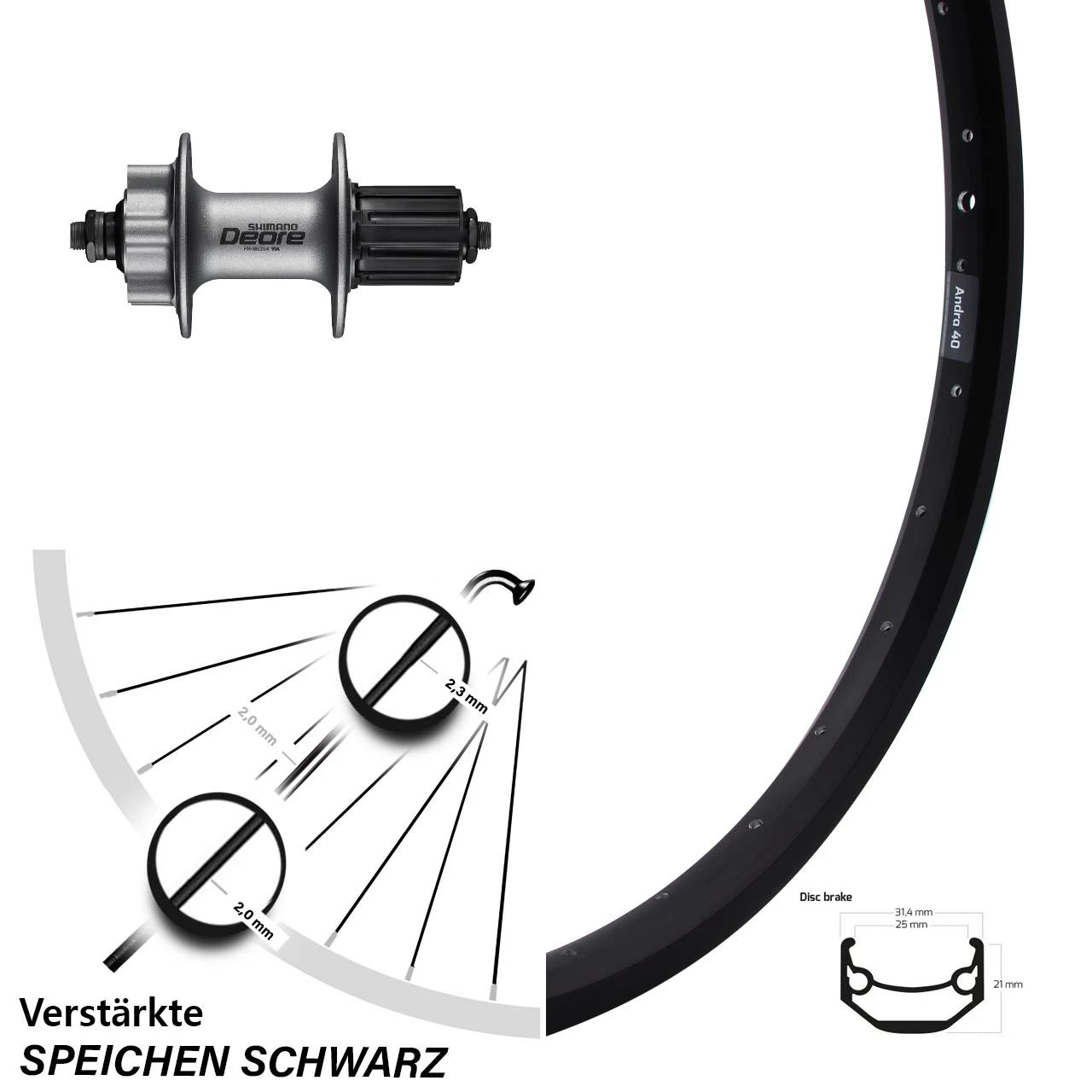 - Hinterrad 20 Zoll Ryde Andra 40 Shimano Deore 6-Loch