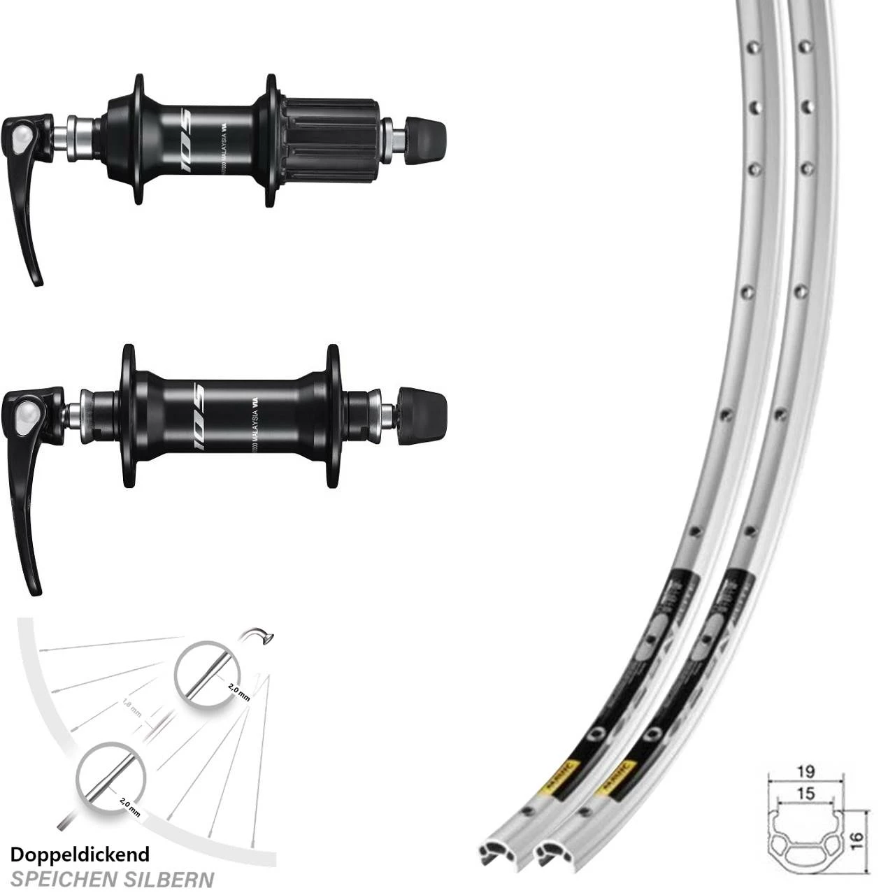 Die verlässlichen Laufräder des Marken-Herstellers Mavic bringen Sie auch nach vielen Kilometern zügig an ihr Ziel. Die silbernen 28 Zoll Felgen (Hinterrad und Vorderrad) sind bei uns im Shop im preisgünstigen Set erhältlich. Dieses beinhaltet neben den silbernen Mavic Open Elite Felgen auch die passenden schwarzen Naben Shimano FH-R7000 schwarz, Shimano HB-R7000 schwarz. Alle Teile unserer Laufrad-Sets sind selbstverständlich farblich und funktional bestens aufeinander abgestimmt und sind an ihrem Fahrrad sofort einbaubereit.