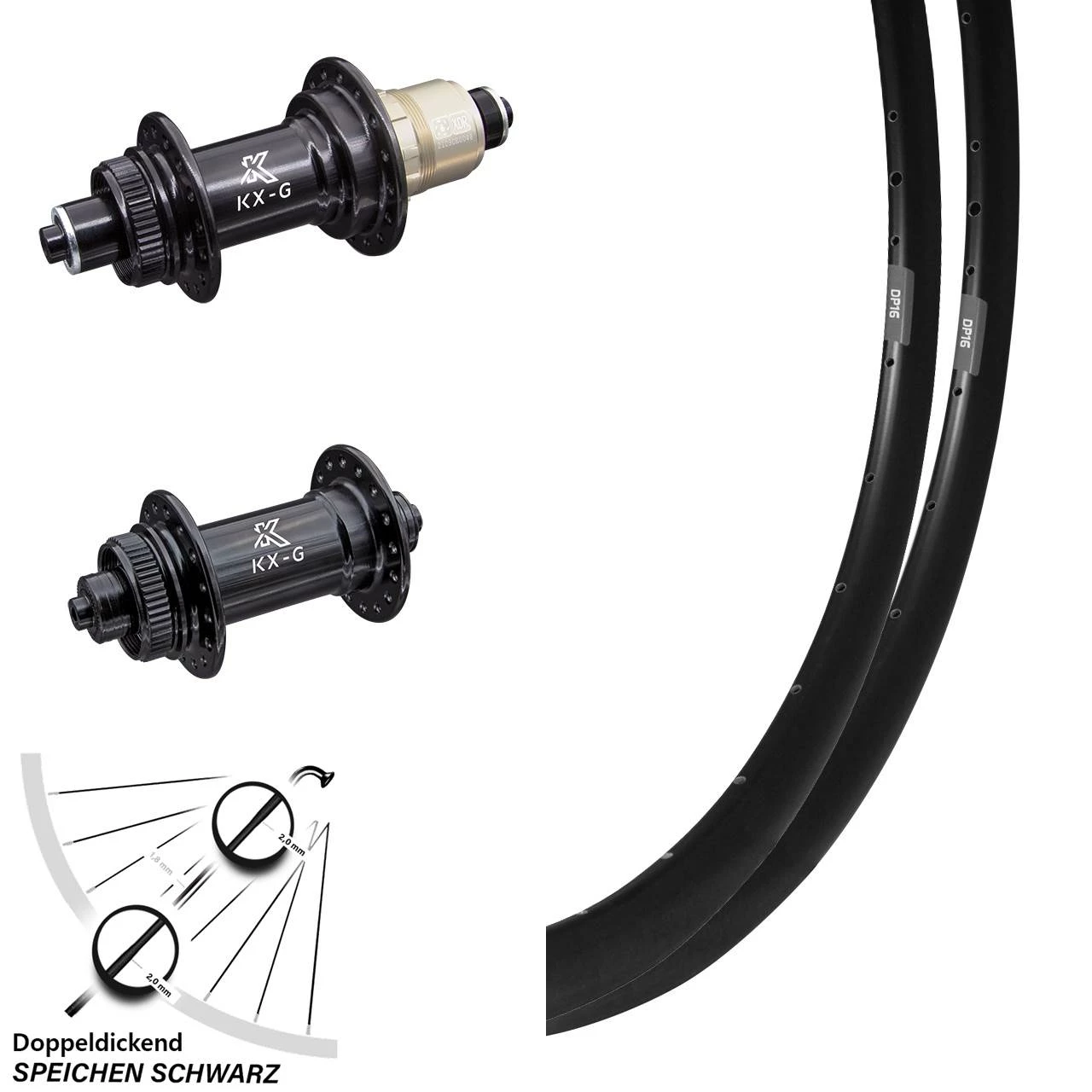 Genießen Sie die Vorteile unserer ausgefeilten Fahrrad-Laufradsätze! Technisch und optisch bestens zusammengestellt bieten unsere Laufrad-Sets ein hohes Maß an Langlebigkeit. Die 28 Zoll Felgen Ryde DP 16 Disc kommen aus dem Hause Ryde und verfügen über eine solide Verarbeitung und eine beständige Laufleistung. Passend dazu liefern wir Ihnen die stabilen schwarzen Naben KX-G Hinterradnabe 5/135 Centerlock SRAM XD-R, KX-G Vorderradnabe 5/100 Centerlock. 32 mit einer Stärke von 2,0-1,8-2,0 mm Edelstahl sorgen für eine hervorragende Stabilität. Dieses langlebige Laufrad-Set ist für Bikes mit Scheibenbremse geeignet. Alle Laufräder aus unserem Shop werden bereits komplett eingespeicht und zentriert an Sie ausgeliefert und sind an ihrem Bike sofort einbaubereit.