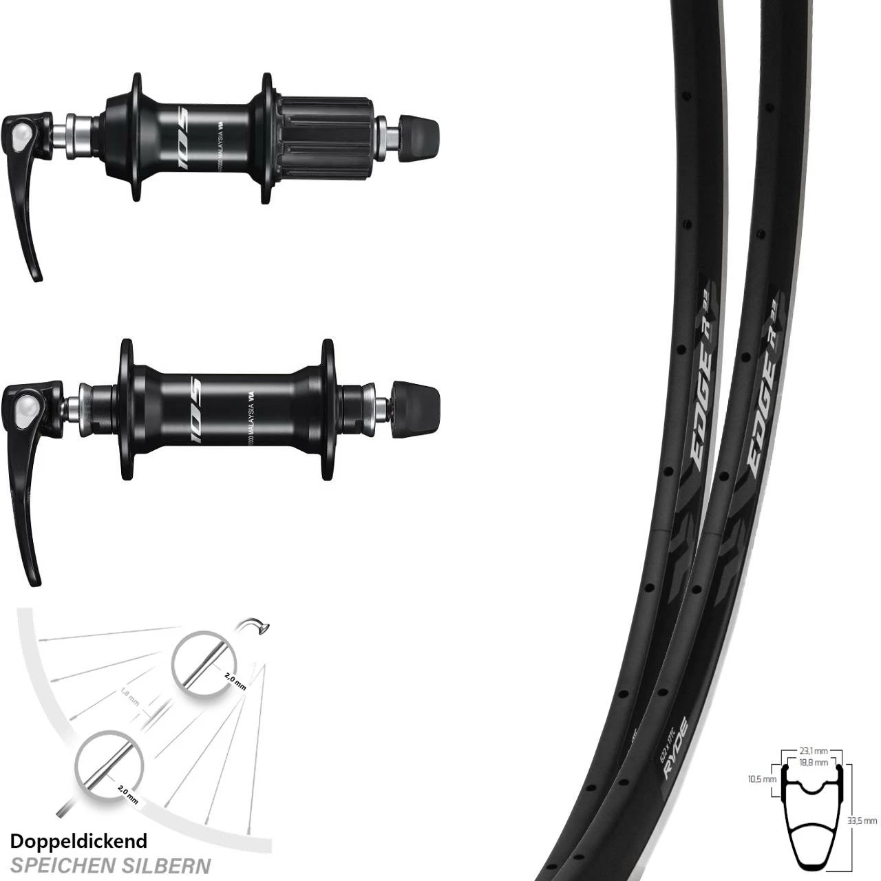 Technische Daten Laufradsatz Road Ryde Edge R33 Shimano 105 11-fach