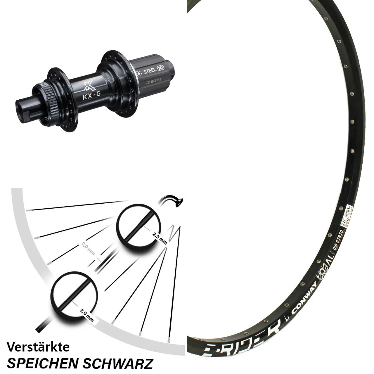 - Nabe: KX-G/S Nabe Hinterrad Steckachse 12/142 Centerlock Stahlachse Stahl-Freilauf schwarz