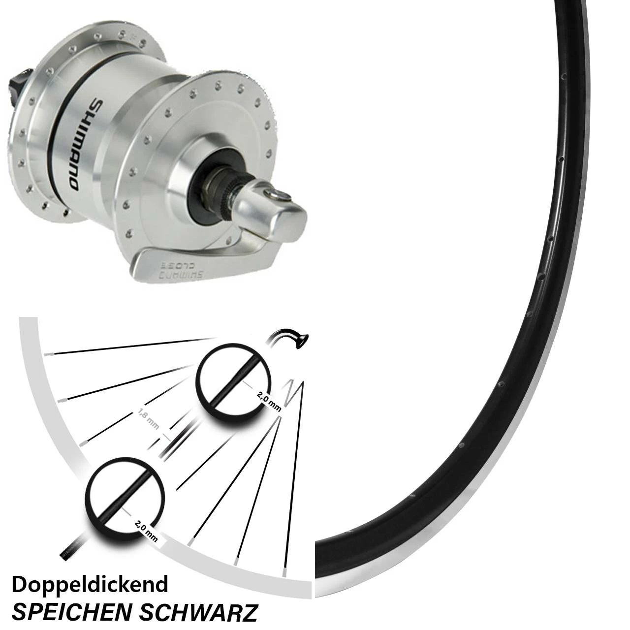 - Nabendynamo: Shimano DH-3N72 silbern – besonders leichtläufig