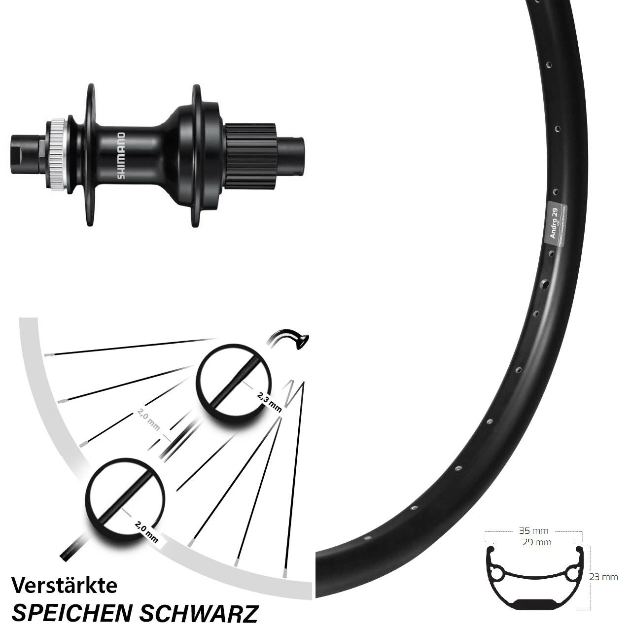 Technische Daten Hinterrad Ryde Andra 29 Disc schwarz und Nabe Shimano FH-MT510 schwarz