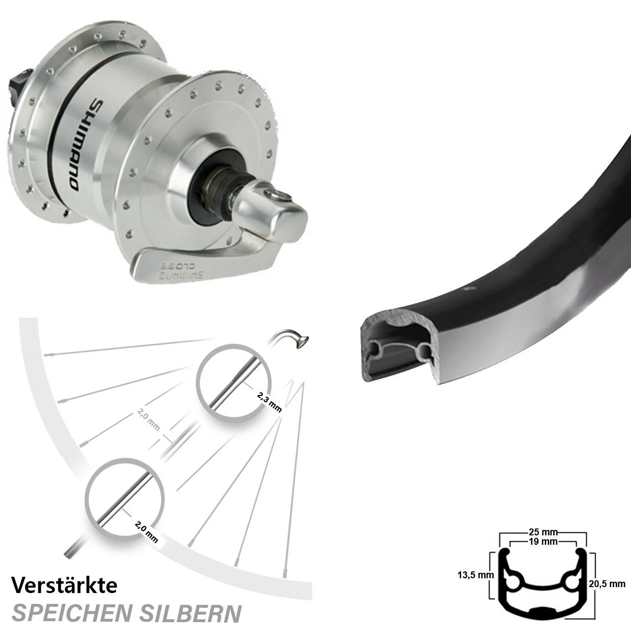 - Nabendynamo: Shimano DH-3N72 silbern – besonders leichtläufig