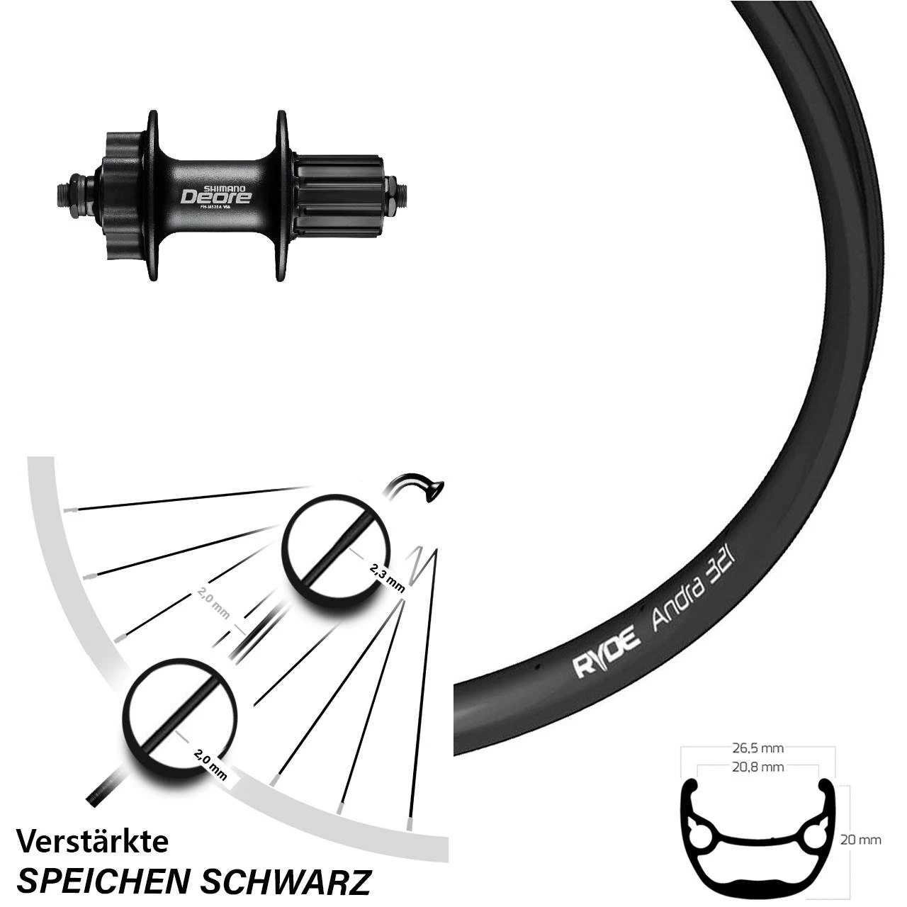 Ryde Andra 321 Hinterrad 27,5 Zoll mit Shimano Deore FH-M525A Nabe mit verstärkten Speichen