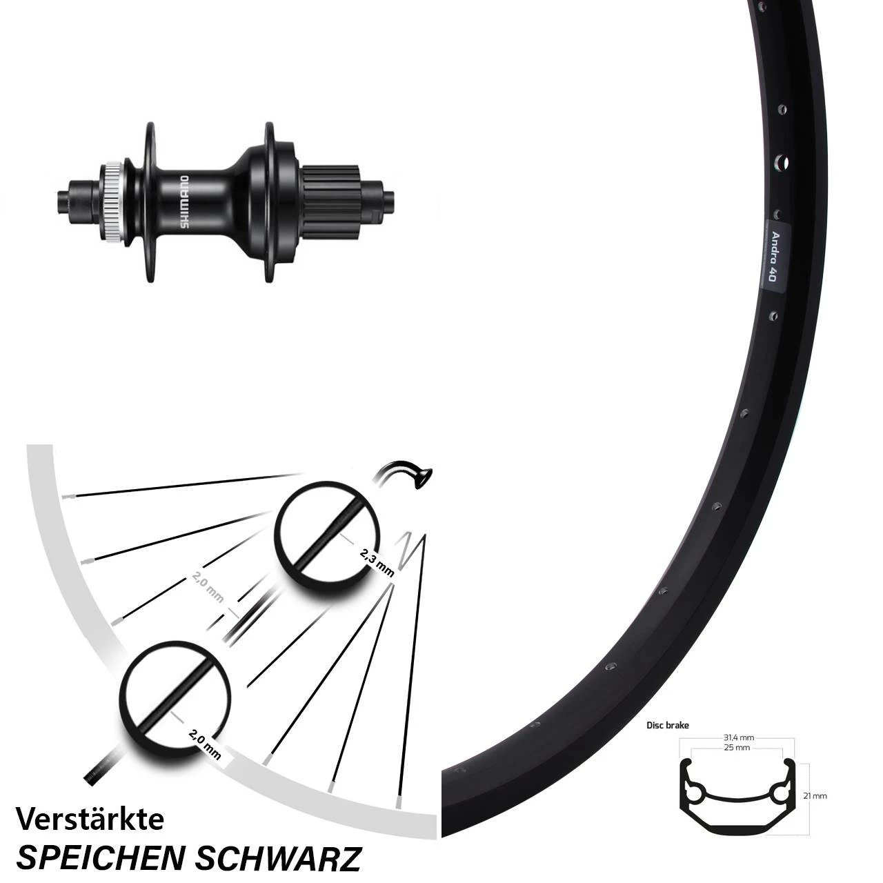 Technische Daten Hinterrad Ryde Andra 40 Disc schwarz und Nabe Shimano FH-MT500 schwarz