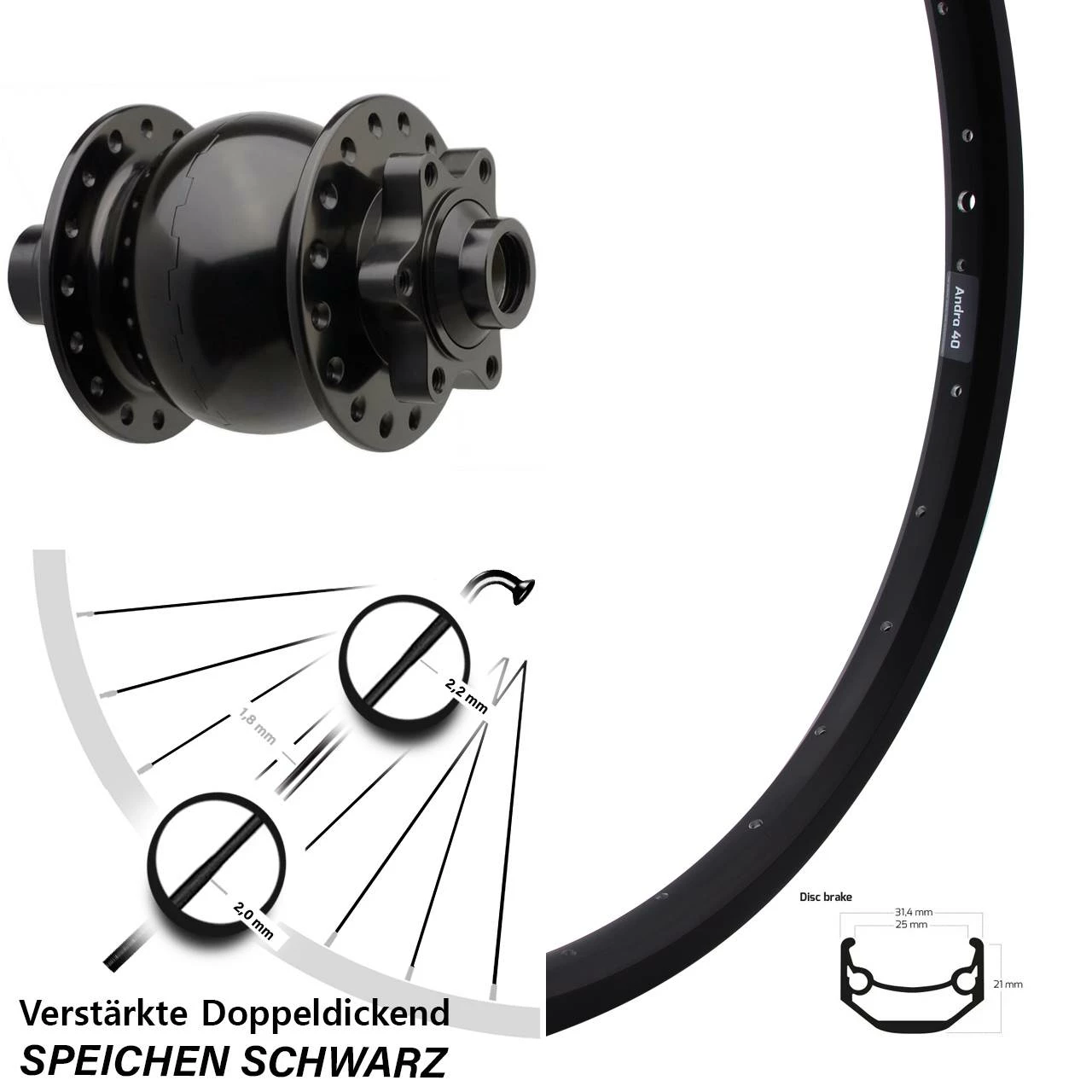 - Vorderrad 28 Zoll, 29 Zoll Ryde Andra 40 Disc schwarz mit Nabendynamo SON 28-15 schwarz