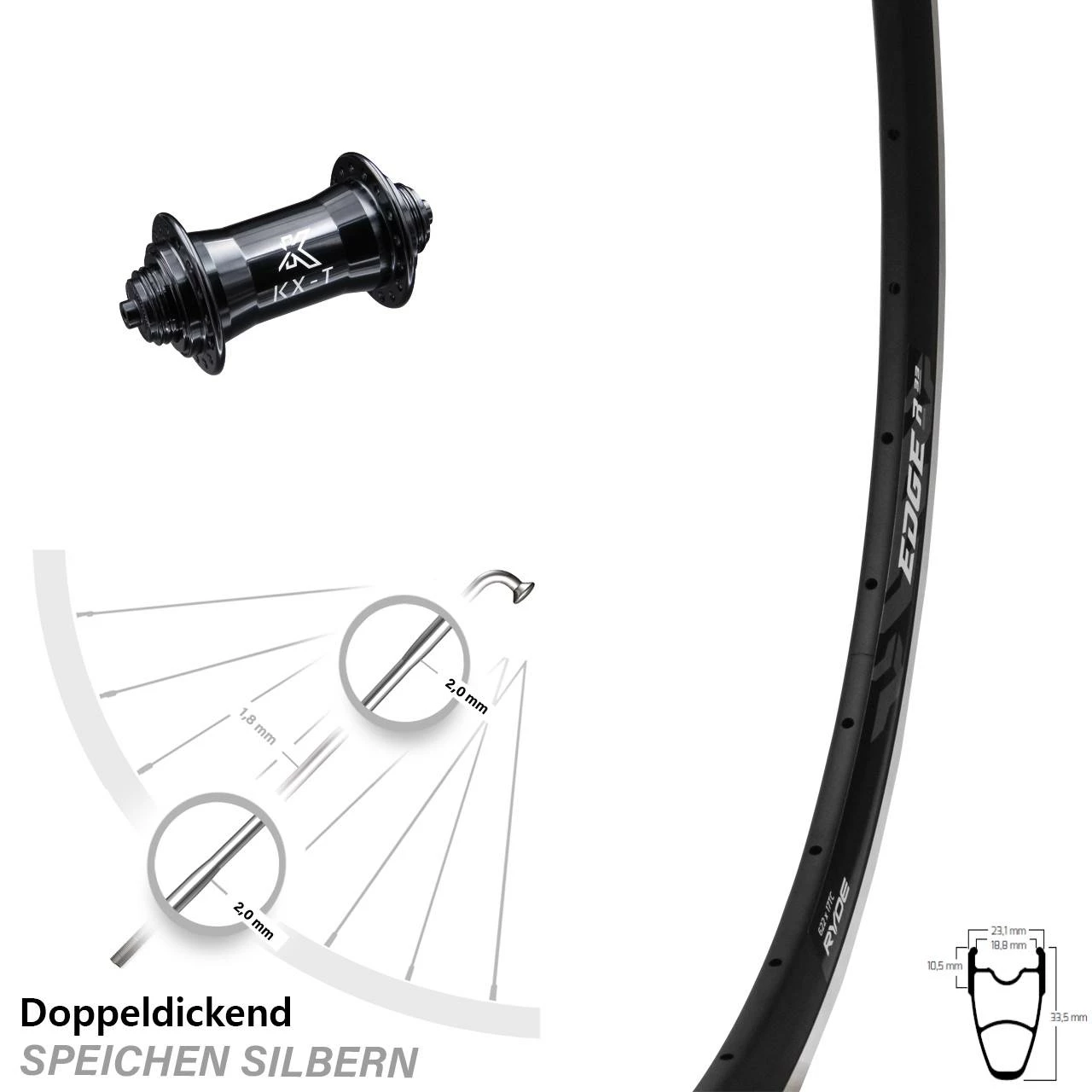 Technische Daten Vorderrad Ryde Edge R33 Felgenbremse schwarz mit Nabe KX-T Vorderradnabe 5/100 Felgenbremse schwarz