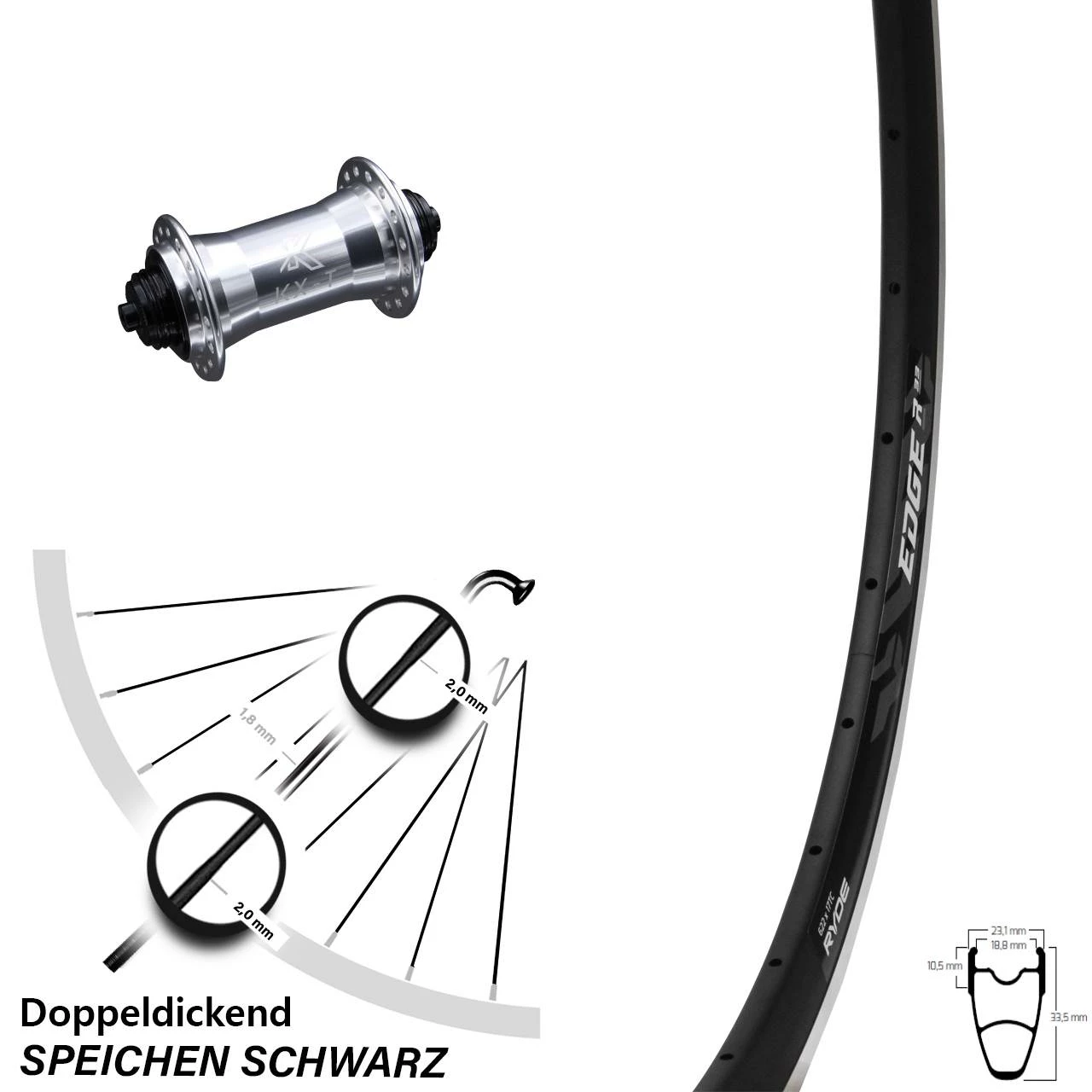 Technische Daten Vorderrad Ryde Edge R33 Felgenbremse schwarz mit Nabe KX-T Vorderradnabe 5/100 Felgenbremse silbern
