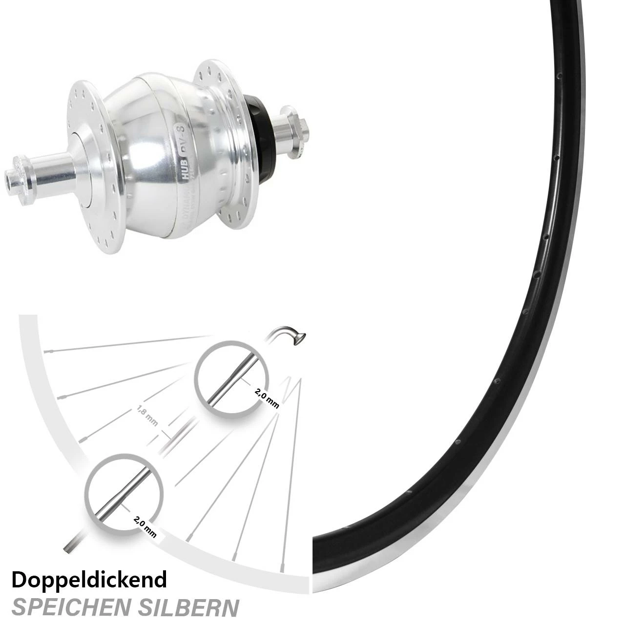 Shutter Precision Nabendynamo Ryde DP 16 Vorderrad 28 Zoll Rennrad mit Doppeldickendspeichen