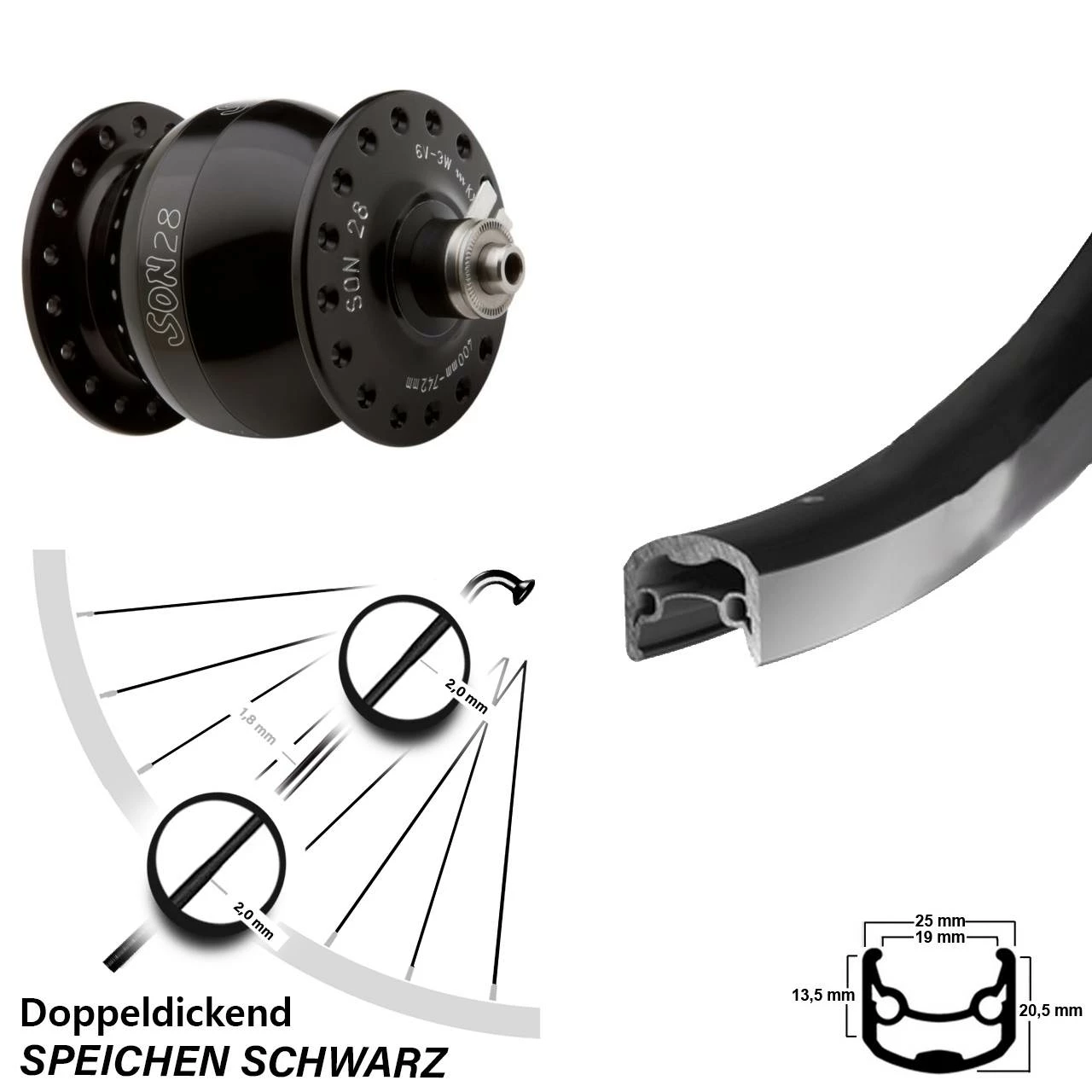 - Nabendynamo: SON 28 schwarz – besonders leichtläufig