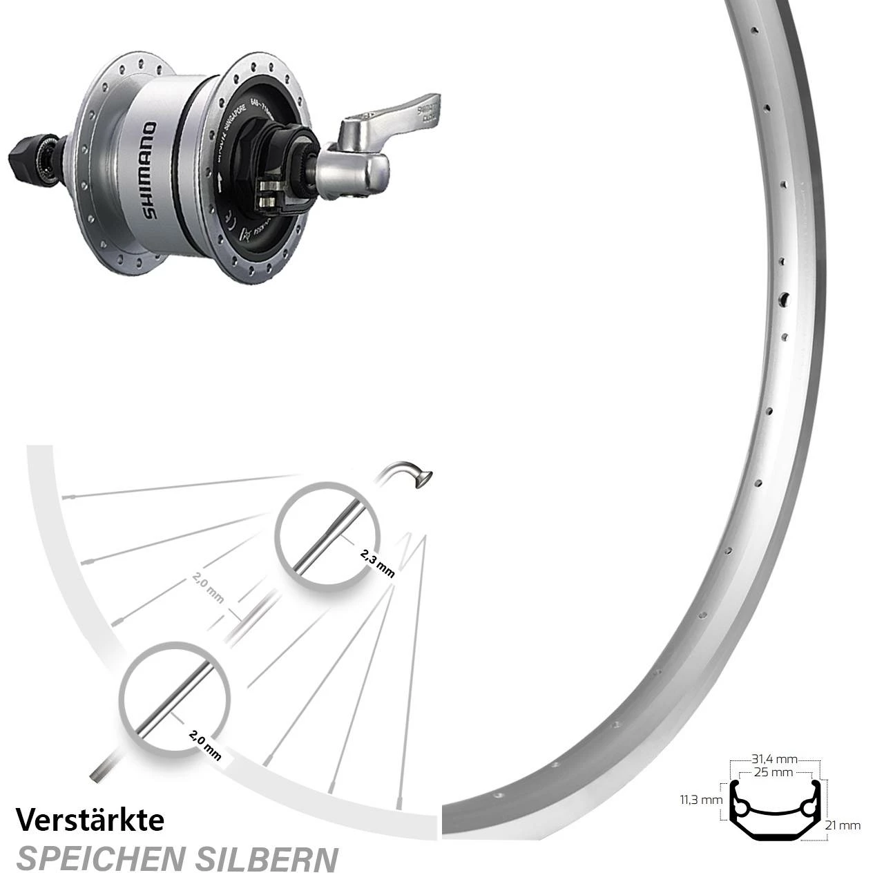 - Nabendynamo: Shimano DH-3D72 silbern – besonders leichtläufig
