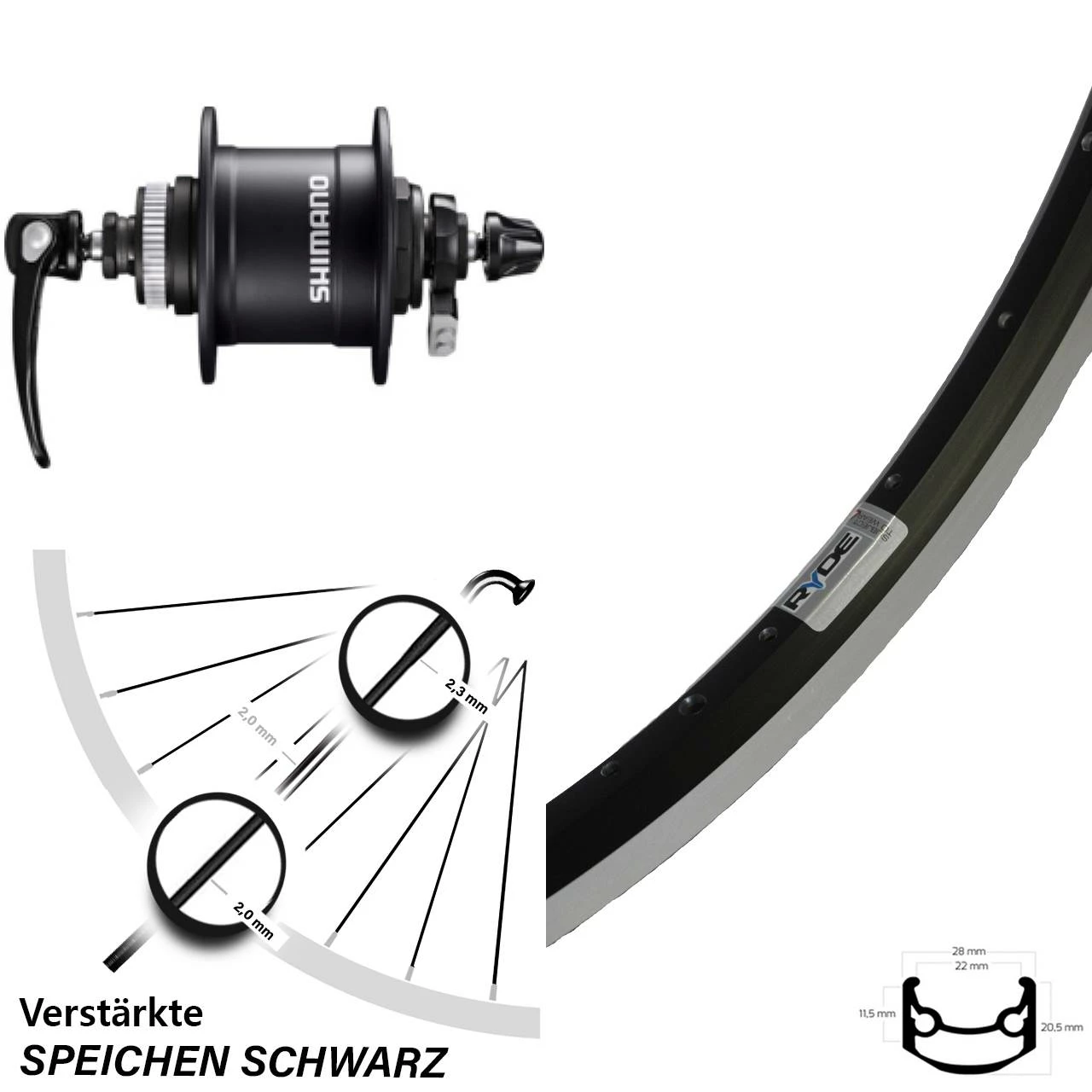Technische Daten vorderes Laufrad Ryde Andra 35 Felgenbremse schwarz & Nabendynamo Shimano DH-T4050 schwarz