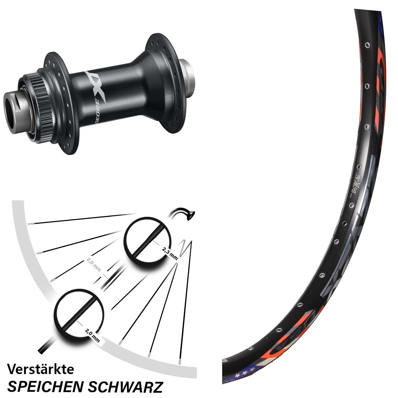 Technische Daten Vorderrad DRC ZZYZX Disc schwarz mit Nabe Shimano Deore XT HB-M8110 schwarz