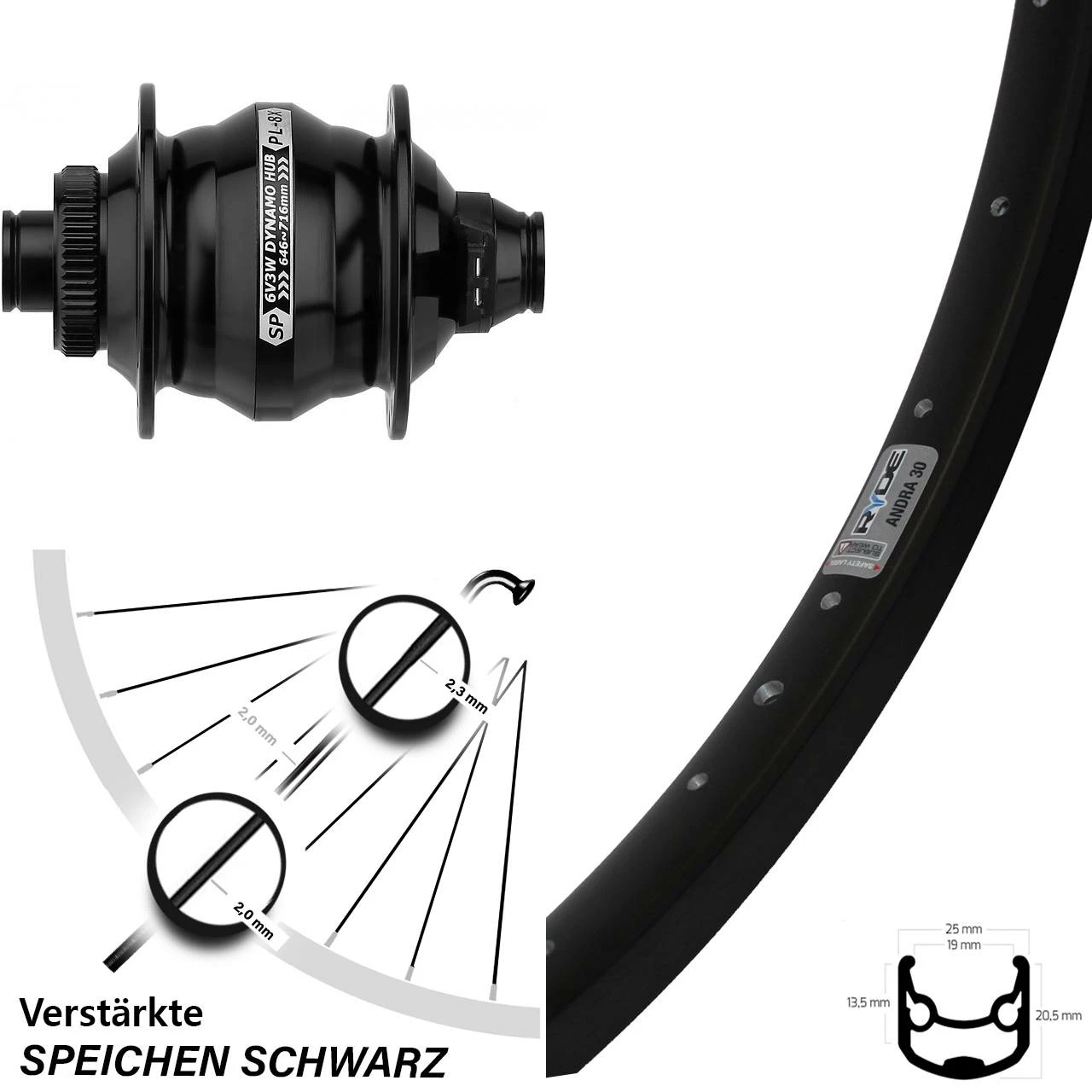 - Vorderrad 28 Zoll, 29 Zoll Ryde Andra 30 Disc schwarz mit Nabendynamo Shutter Precision PL-8X-M schwarz