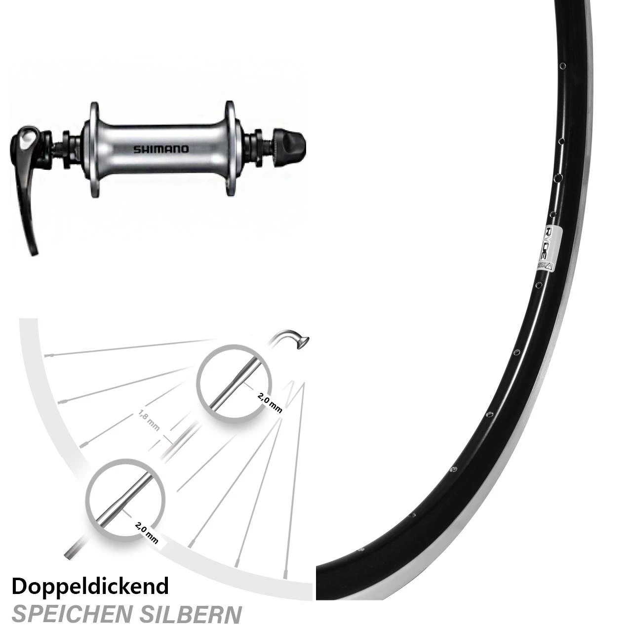 Technische Daten Vorderrad Ryde Dutch 19 Felgenbremse schwarz mit Nabe Shimano HB-RS400 silbern