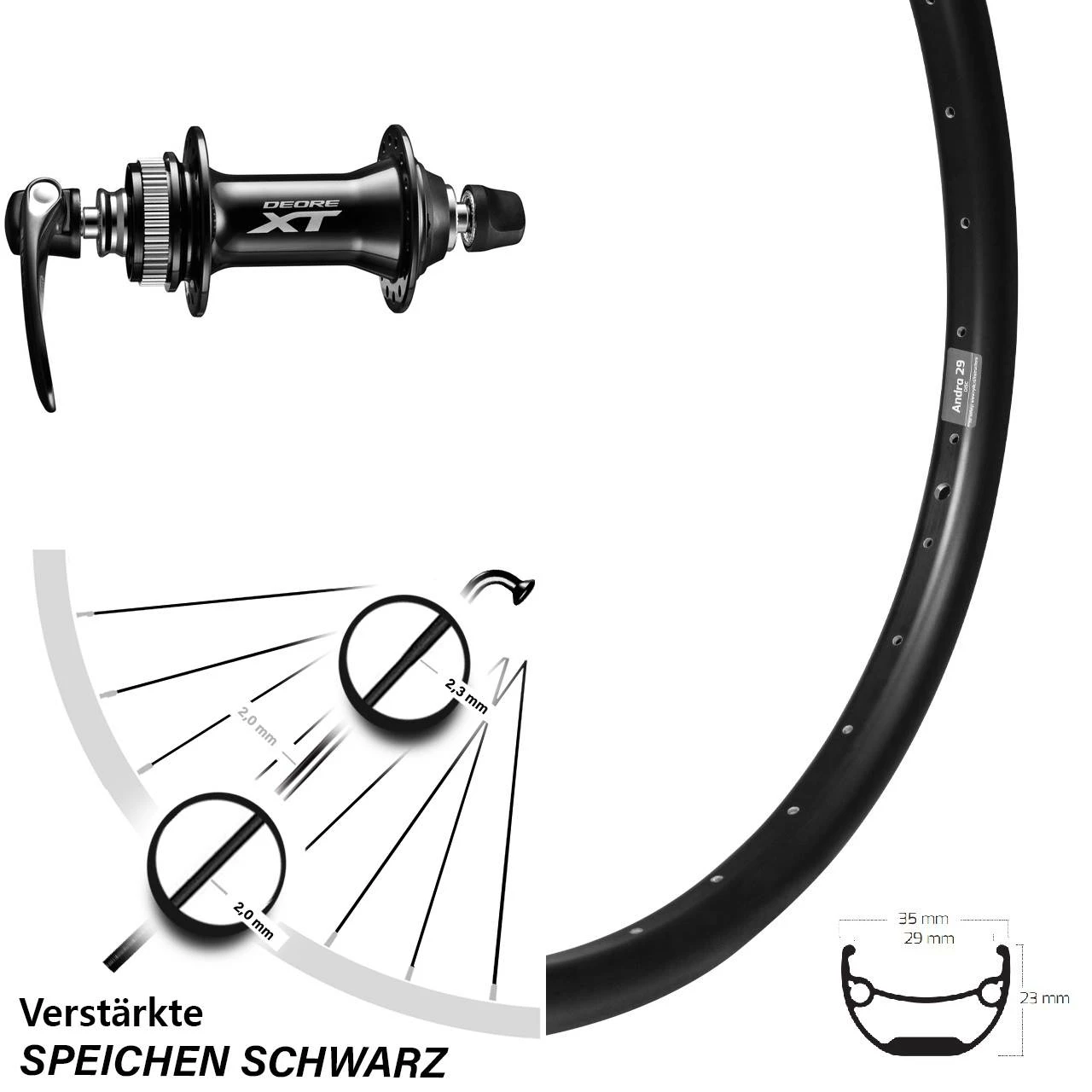 Technische Daten Vorderrad Ryde Andra 29 Disc schwarz mit Nabe Shimano HB-M8000 schwarz