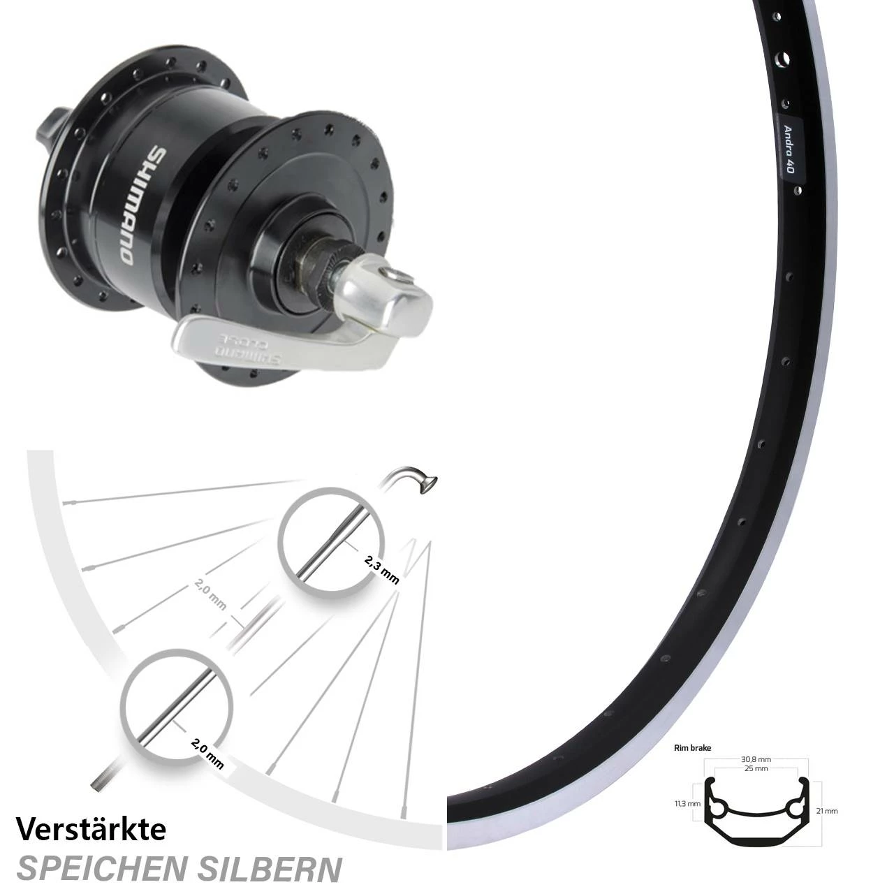 Produktbeschreibung Vorderrad mit Nabendynamo 28 Zoll Ryde Andra 40 Shimano DH-N72 schwarz